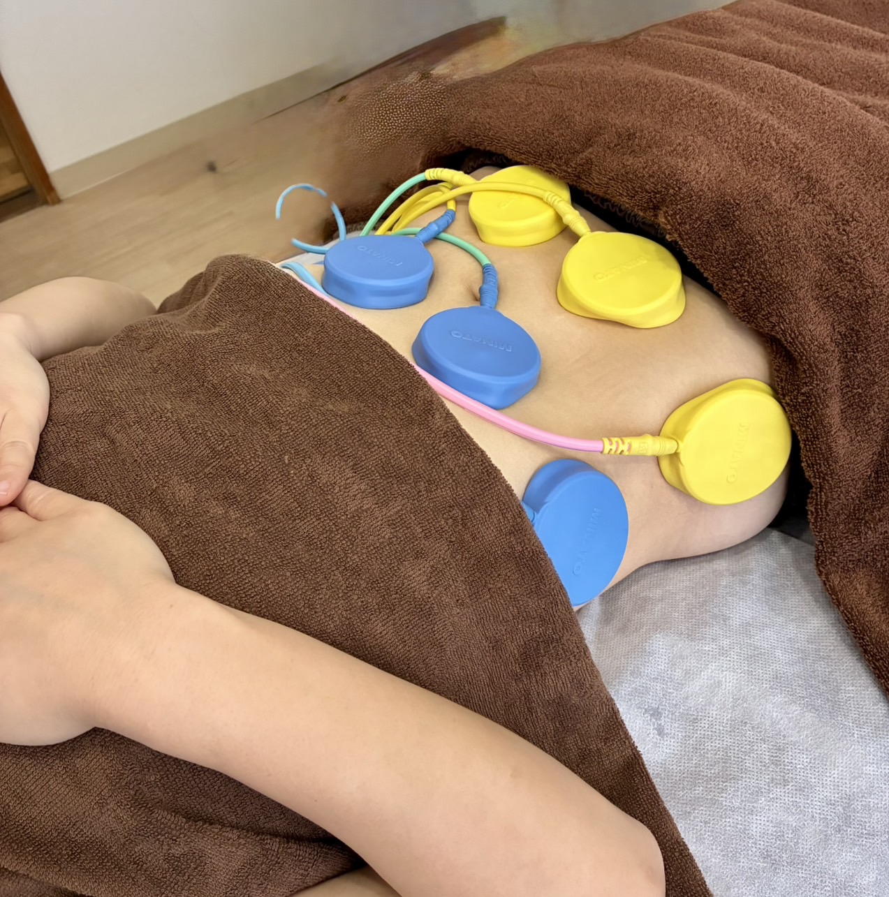 温めることで血流を改善させて冷えやむくみを取っていきます。